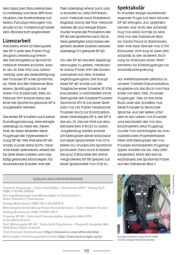 Vorbild-Dokumentation aus dem Modell-AVIATOR zur Fournier RF4D