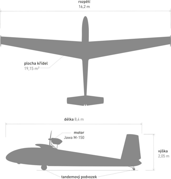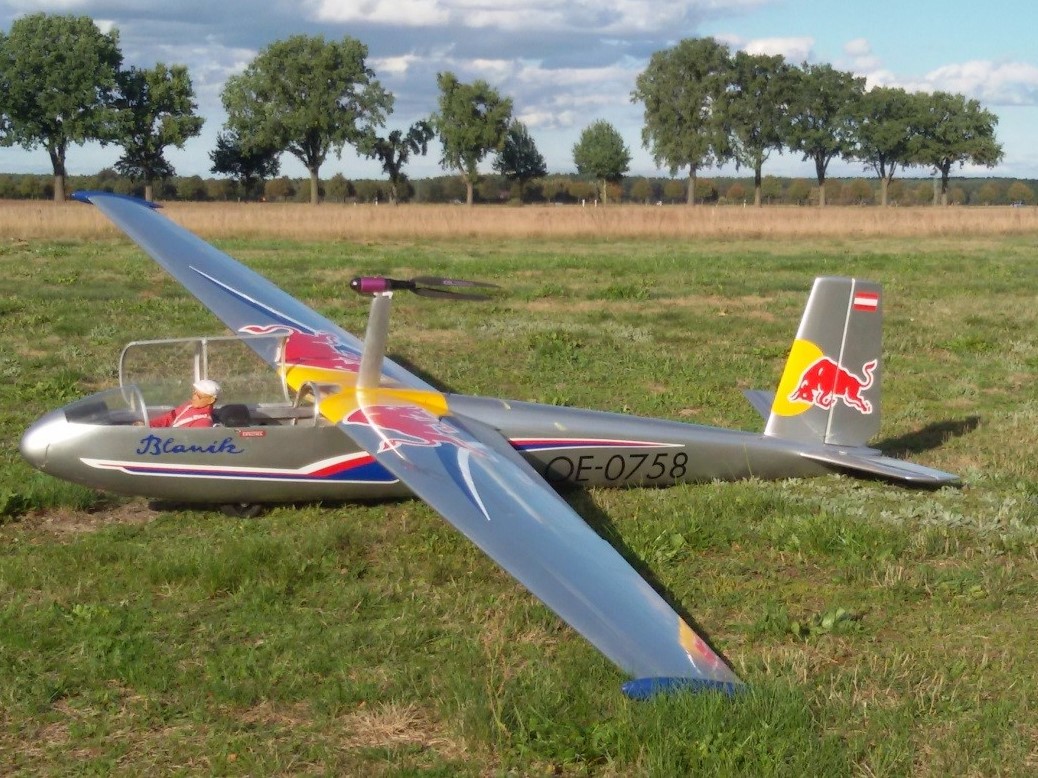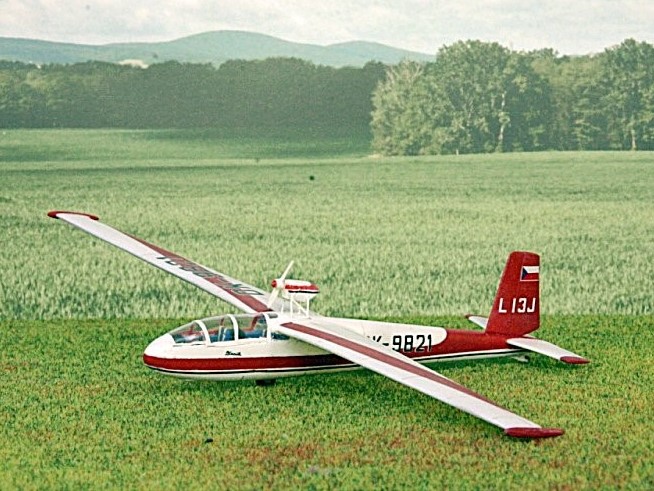 Das Orginal: Der Blanik L-13 ist ein 2-sitziges Segelflugzeug in Metallbauweise, konstruiert 1956 von K. Dlouhy und seinem Kollektiv. Er hat eine Ganzmetallstruktur, mit dünnem Blech beplankt. Seine wirksamen Luftbremsen, an Ober- und Unterseite ausfahrbar und große Fowler-Klappen bestimmen sein Landeverhalten bzw. die Langsamflugeigenschaften. Das gefederte Fahrwerk lässt sich teilweise einziehen. Die Gleitzahl beträgt 28 bei 93 km/h. In 22 Produktionsjahren gab es immer