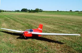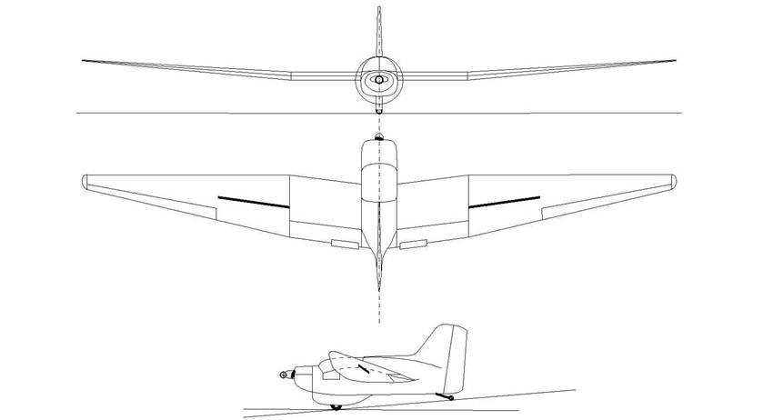 Flügel seines Nurflügel-Seglers AV-22 einen zweisitzigen Motorsegler, die