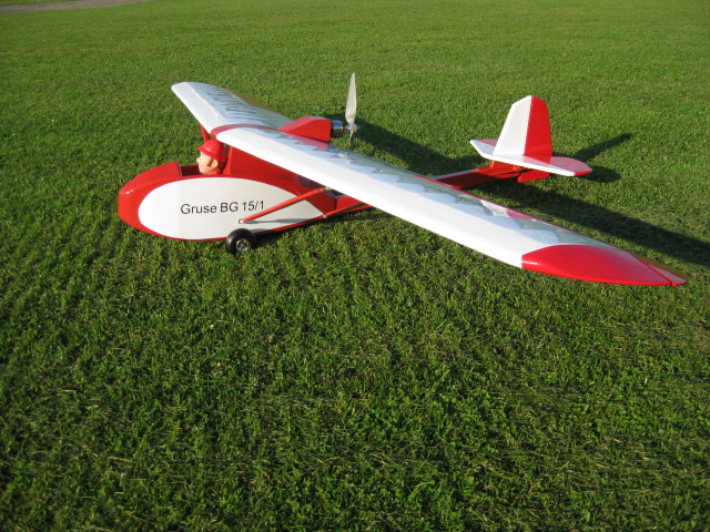 Teilweiser Auszug aus „Flugsport“ 1935, Seite 311 ff: „Motorgleiter BG 15/1 Für den Entwurf des Motorgleiters war der Wunsch maßgebend, eine Maschine zu schaffen, die dem Segelflieger im Flachland gestattet sei fliegerisches Können zu erhalten. Start- und Landeeigenschaften sollen sich denen eines Motorflugzeuges so stark nähern, wie es mit Rücksicht auf die Eigenheiten von Segelflugzeugen irgend möglich ist. Ebenso sollen sich die Flugeigenschaften des Motorgleiters denen der Motorschulmaschinen möglichst nähern. ... Um Segelfliegern Übungsgelegenheiten zu geben, soll der Motorgleiter im Fluge mit gedrosseltem Motor segelfähig sein.“ Von dem Gruse BG 15/1 wurde nur ein Exemplar gebaut. Der Prototyp war ausgerüstet mit einem Köller-2-Zylinder-Zweitaktmotor von 18 PS Leistung. Der Tankinhalt von 28 Liter ermöglichte eine Motorlaufzeit von 3,5 Stunden. Die Segeleigenschaften der Maschine waren sehr gut. Durch die gepfeilten Tragfläche und dem geschränkten Profilverlauf war die Maschine sehr eigenstabil. Der Rumpf ist um den zentralen, sperrholzbeplankten und kastenförmigen Leitwerksträger aufgebaut, der den Führersitz und den Benzintank trägt. Die Flächenhälften sind mit je zwei Streben an den Rumpfträger abgestützt und zusätzlich mit Seilen verspannt.