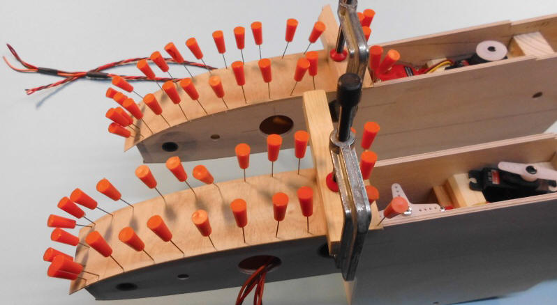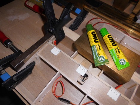 Das Einleimen der Holmstege aus 3 mm Sperrholz