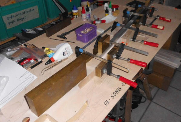 Schluss wieder mit Weißleim sowie etlichen Gewichten. Dazu habe ich die
