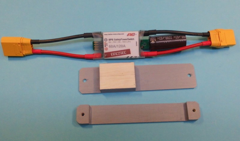 Unterkante auf dem Baubrett aufliegt. Für die feste und sichere Verbindung mit dem Rumpf, möchte ich diesmal Kunststoffschrauben verwenden. Diese können dank des großvolumigen Rumpfes problemlos von innen her durchgesteckt und angezogen werden. Die Gegenstücke in der Fläche bestehen aus 35x25 mm großen Abschnitten von 4 mm Alu, die mit M6 Gewinde versehen, innen an die Sperrholzrippen geharzt wurden.