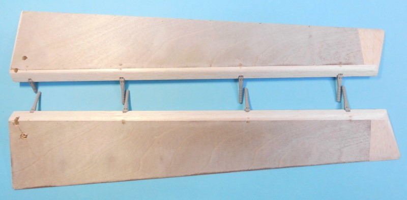 Stiftscharniere der Seitenruder eingeklebt. Dazu habe ich pro Scharnier