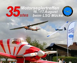 Jahrestreffen der Motorsegler-IG findet vom 16. - 17. August 2025 in Mücke Die Flugsportgruppe Mücke e.V. in Nieder-Ohmen wird uns wieder zu unserem 35. Jahrestreffen begrüßen. |