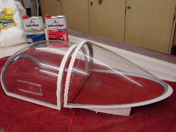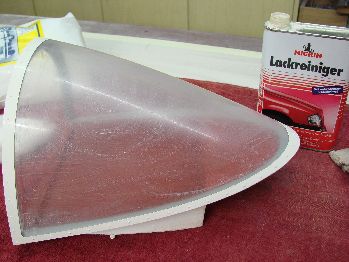 älterer Kabinenhauben gemacht. Ich verwende Lackreiniger für stark verwitterte Lacke. Der
