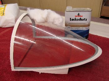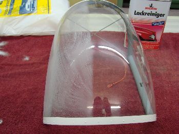 trocknen lassen und dann mit Polierwatte fleißig polieren. Das Endergebnis: Auf dieser Kabinenhaube rutscht sogar eine Fliege aus und die hässlichen Fingerabdrücke sind weg. So