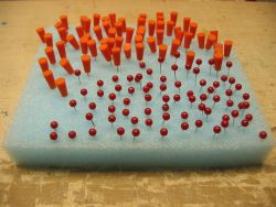 Es gibt aber auch noch die schön schlank angeschliffenen, z.B. von CONRAD, die sich, allerdings mit viel Kraft, sogar in Sperrholz eindrücken lassen. I ch habe sie bisher in einer kleinen Schachtel aufbewahrt und bei Bedarf daraus entnommen. Wahrscheinlich weiß längst jeder was dabei leicht passiert? Man hat eine Nadel zwischen Daumen und Zeigefinger und zwei weitere stecken schmerzhaft in den Fingerspitzen.